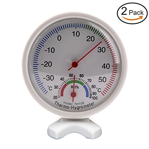 -. Feature : Modern type thermometer&hygrometer / Humidity measurement range:20%-100%RH, Temperature measuring accuracy: -35~55°C / Hooking hole available with adjustable port / Diameter: approx 80mm, easy to read / Widely used for measurement of the temperature and humidity in house, school, office, hotel, factory, storeroom etc