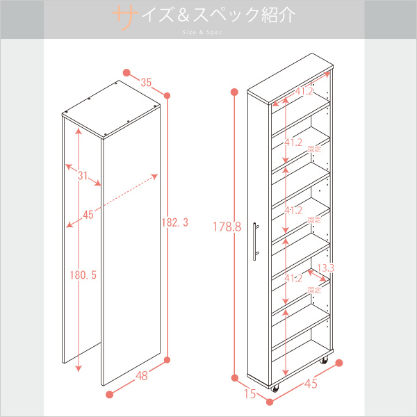 ラック:外寸 幅15cm×奥45cm×高178.8cm