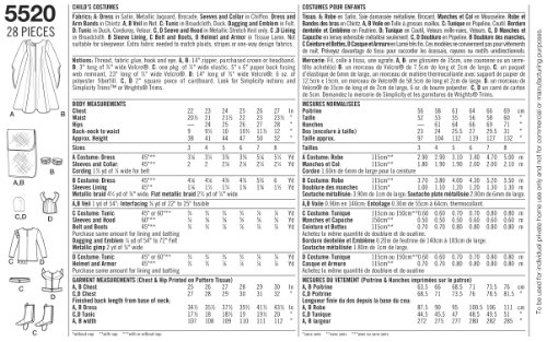 Simplicity Sewing Pattern 5520 Child Costumes, A (3-4-5-6-7-8)