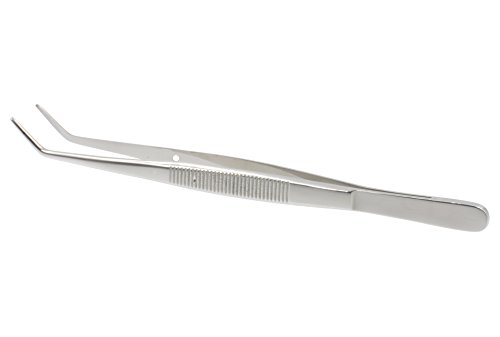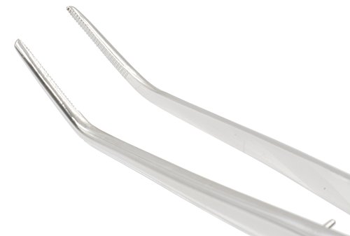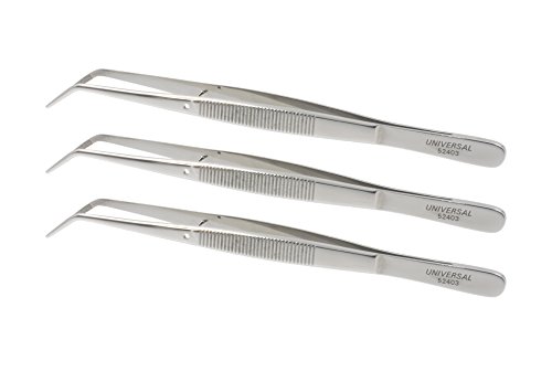 Universal Stainless Steel Precision Grade Curved Tip Tweezers / Forceps with Serrated Tip and Furrowed Handle, 3 Piece Pack