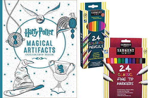 Gift Art Kit Includes Harry Potter Magical Artifacts Coloring Book, Sargent Art 24 Colored Pencils & 24 Fine Tip Markers Gift Set – Color Your Favorite Magical Hogwarts Scenes with this Art Kit For All Ages