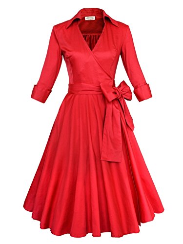 -. Title : Babyonline® 3/4 Sleeve Classy V Neck Audrey Hepburn Style 1940's Rockabilly Dress