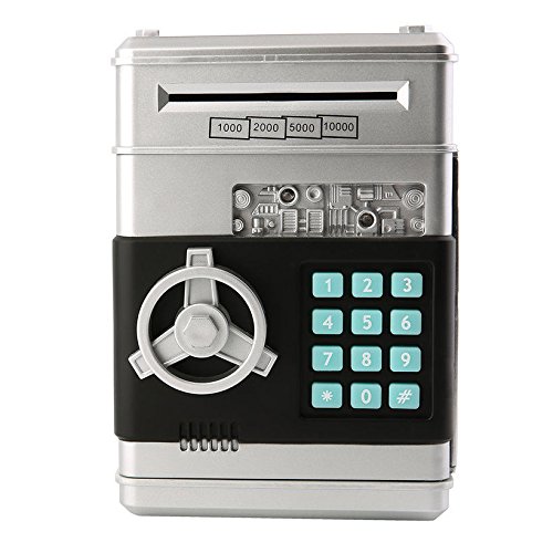 Use Guide: To open the safe, you first need to enter a four-digit password. The safe default password is 0000. Follow these steps to use safely: 1. Enter the four-digit password and green lights. If you enter the wrong password, the red light will be lit and will issue "PLEASE TRY AGAIN" voice tells you. 2. Clockwise knob, opened the door. Green light for about 10 seconds, you will hear the creak of the door opening. If the door is open for longer than 10 seconds, the green light is off, and beep sound once every 20 seconds. To stop the beep, you can close the door. 3. Banknote banknotes into the mouth, the bill can be directly admitted. Then press the password can withdraw money. 4. When you are finished, close the door lock is good. Change the password, follow these steps: 1. Enter the current password (default 0000) to open the safe door. 2. Hold the "*" button down, both green and red lights flash. 3. Within 15 seconds, enter the new 4-digit password, press "#" to confirm to store the new password. Light stops flashing. Note: If the new password is not entered within 15 seconds, the program will stop, you must restart the program. Release the "*" character button and close the door. Important: This "MONEY SAFE" is recommended for the ages 6 and up, not suitable for under 3 years old as the toy is electrical and mechanical. More detailed information and cautions, please read the manual carefully. Package includes: 1* Electronic Password Piggy Bank * Detailed English Use Manual If you have any problem or confuse about the product, please fell free to contact us. Thank you very much. 0 |