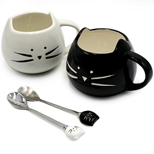 -. Title : Koolkatkooセラミックかわいい黒と白猫マグカップとスプーン350mlコーヒーマグカップギフトセット猫愛好家へ贈り物記念日のプレゼント家族・仲間・こどもへのギフト