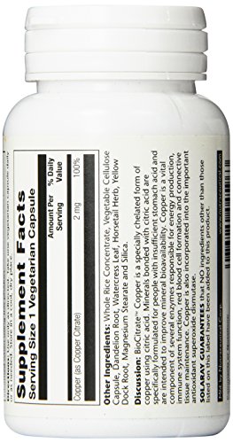 Bonded with citric acid, Solaray's BioCitrate Copper 2 mg allows for a more bioavailable mineral that is better absorbed and utilized by the body.