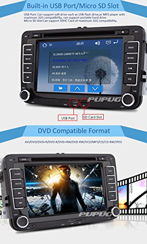 Multi media: This car audio receiver has a mounted DVD player capable of playing discs and file-types like DVD, VCD, CDs, CD-R/CD-RW, MP3, MP4, WMV and more.Support USB/SD card up to 32GB.