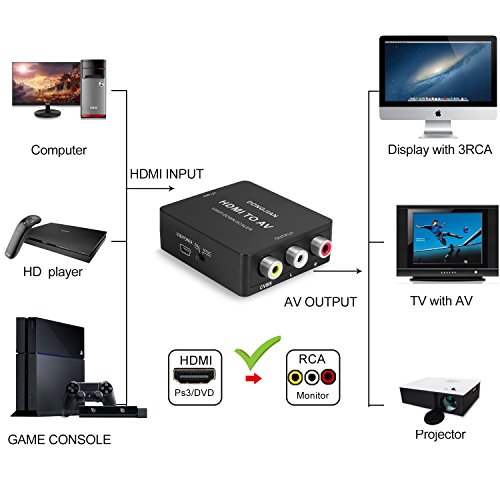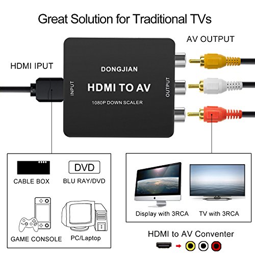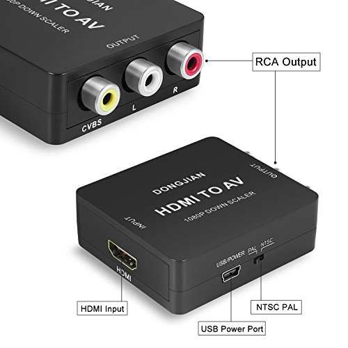 DONGJIAN HDMI to RCA Converter 1080P HDMI to AV 3RCA CVBs Composite Video Audio Adapter Supporting PAL/NTSC with USB Charge Cable