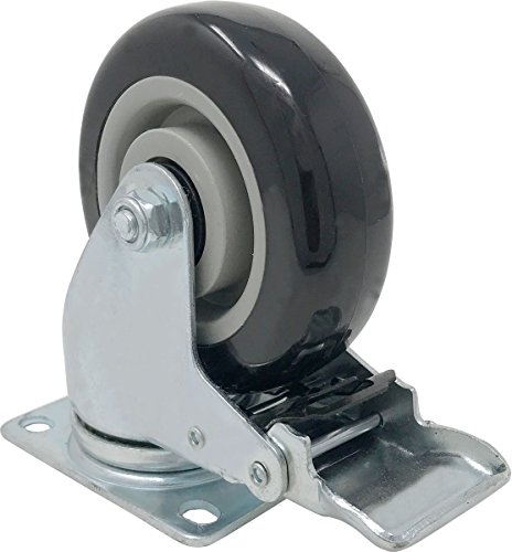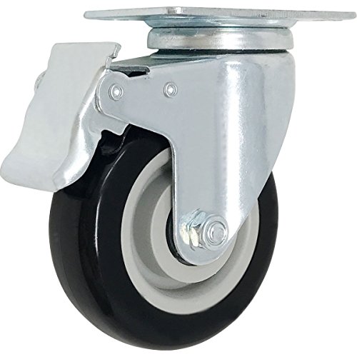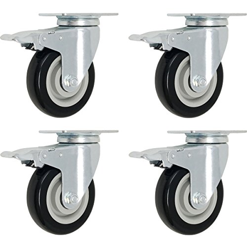 4 Pack Caster Wheels Swivel Plate Stem Brake Casters On Black Polyurethane Wheels 880 Lbs (4 inch with Brake)