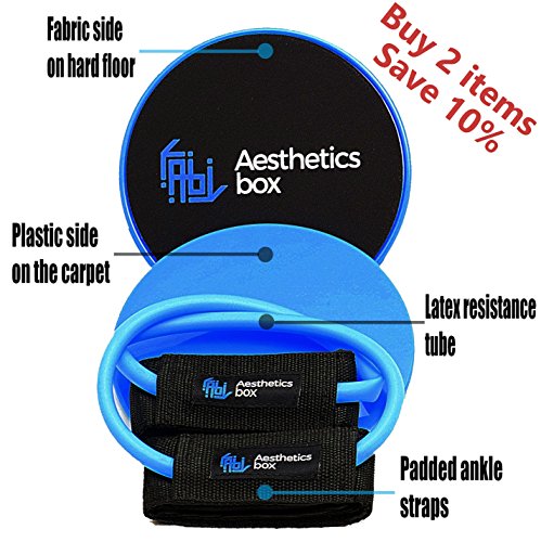 What is Aesthetics Box? Aesthetics Box is a premium brand with a set of principles concerned with the nature and appreciation of beauty and healthy life. ? ? Easy to use for everyone, anywhere. Doesn’t matter if are you new to this, love to workout from time to time or are you a fitness junkie... wherever you may be on the fitness spectrum, the Aesthetics Box Kit will help you burn fat, stay fit, and achieve that six-pack. If you like to travel take it with you and do your workout routine anywhere you want. ? Work smart, not hard. This kind of training helps you to avoid injury's, stay sharp, improve your strentgh and agility and also helps you to recover from old injury's. ? Perfect gift! Our workout training kit comes with a nice design packaging box who can be offered as a gift for him and her. ? Package Content: ?2 Gliding Discs with doubled sided for every type of hard floor or carpet. ?2 Ankle Straps with very strong velcro and interior side padded. ?1 Resistance Band Tube doubled, built-in with the ankle straps. ?1 Mesh Bag made from resistant fibers, for traveling and deposit. ? Lifetime Warranty! We’re so confident in the quality of our products that we give you a 100% satisfaction guarantee. If you don’t absolutely love your Aesthetics Box Kit, just send them back and we’ll refund you in full, customer satisfaction is our number 1 priority. 0 |