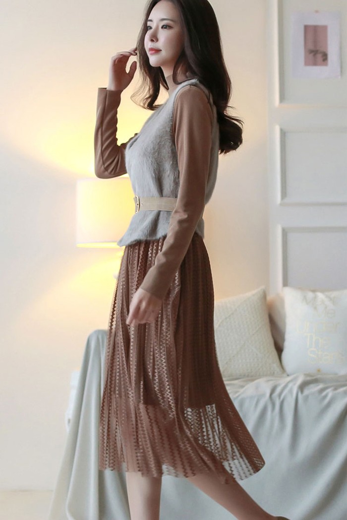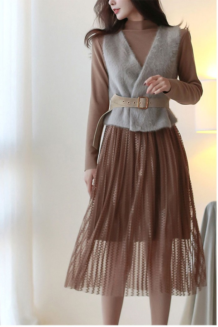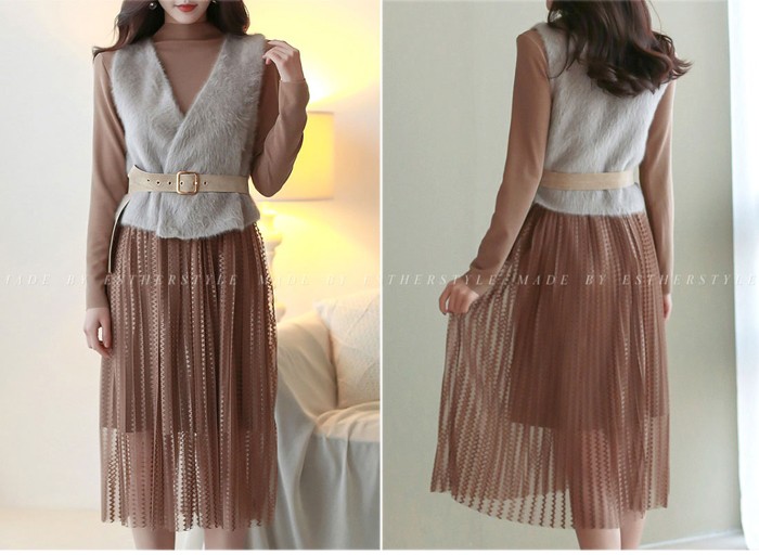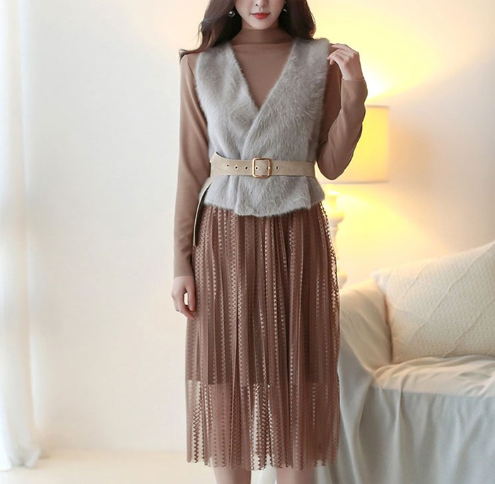 商品名:ワンピース ロング丈 ベストセット 起毛
