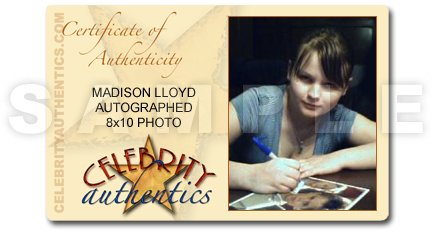 Includes Celebrity Authentics Certificates of Authenticity featuring a picture of Jake and Madison signing the photo.