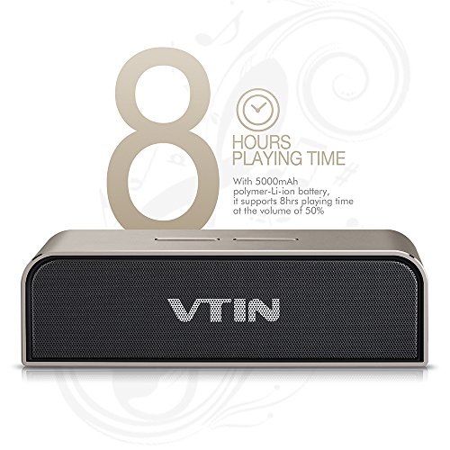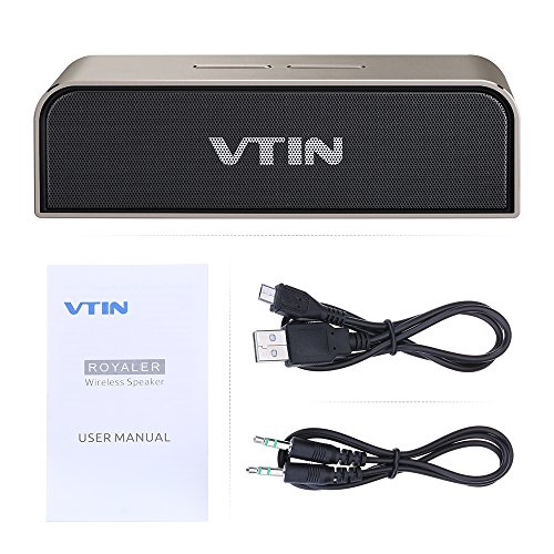 -. Feature : 20W Leistungsstarke Treiber. VTIN Royaler Lautsprecher bietet Ihnen leistungsstarke Volume dynamische und unglaublichen Klang. Der passive Subwoofer können Sie den reichen Bass genießen. / Auswahl der hochfesten Aluminium Legierung und hohe Präzision CNC poliert Tech. Der Sprecher ist langlebig und robust. / Bluetooth V4.0. Genießen Sie einfach die hohe Stereo-Sound. Der Zusatz-Port hilft Ihnen, Ihre anderen Geräte ohne Bluetooth Funktion verbinden. / 8 Stunden Spielzeit. Es bietet Ihnen mit einer Prämie Akku 5200mAh Polymer-Li-Ion Akku 8 Stunden Spielzeit in der Lautstärke von 50 %. Portable Größe macht es einfach, von Raum zu Raum tragen. / Freisprechfunktionen. Mit eingebautem HD Mikrofon und Geräuschunterdrückung Tech. Mit eingebautem Mikrofon und Geräuschunterdrückung Techn. in HD kann der Lautsprecher die Umgebungsgeräusche Sie bieten eine kristallklare Rede filtern.