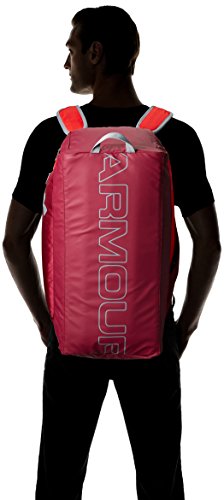Works as both a backpack & a duffle. UA storm technology delivers an element-battling, highly water-resistant finish. Adjustable, padded, Heat Gear shoulder straps with integrated handle & sternum strap. 2 large vented end pockets, 1 expandable for laundry & shoes. Water-resistant valuables pocket & large organization pocket. Top grab handle. 45 degree water bottle pocket. Dimensions: 10" x 22" x 11".