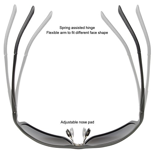 -. Feature : Light Weight Aluminum and Magnesium Metal Frame / 100% UVA and UVB Protection / Shatterproof TAC lens / Polarized lens anti glare / Comfortable nosepad