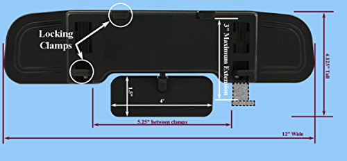 UNIVERSAL FIT & SUPER SIMPLE INSTALLATION - It just snaps on right over a standard factory rear view mirrors. No tools, No annoying suction cups which never stick, and No clips which always break. Its spring-loaded clips expand to a height of three inches. (Measure existing factory mirror to ensure its height does not exceed three inches. Blue Guardian WILL OBSTRUCT ANY BUTTONS ON THE FACE OF EXISTING FACTORY MIRRORS.) Dimensions - Large Mirror: 12" X 2.75" Small Mirror: 4" X 1.5"