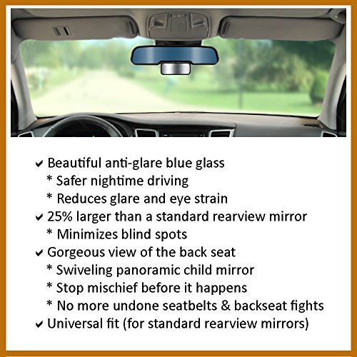 DON'T SABOTAGE YOUR SAFETY - Trying to use a single mirror for both your rear view driving and for watching the kids in the backseat is a recipe for disaster. Blue Guardian allows you to leave your rear view exactly where it is supposed to be and still supervise backseat activities. Plus, its expanded size minimizes blind spots, its anti-glare anti-dazzle blue tint gives a Premium View, and it reduces eye strain.