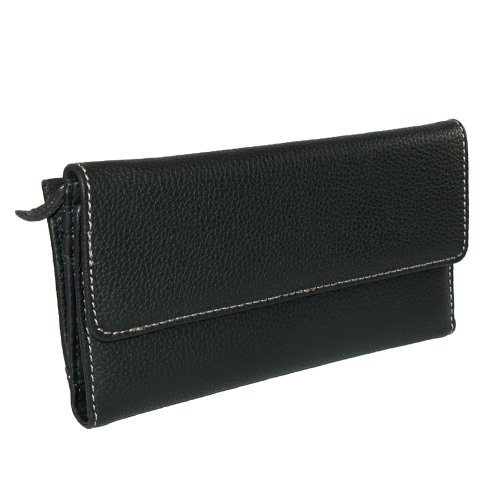 Mundi Womens Rio Leather Back Zip Checkbook Cover Wallet, Black
