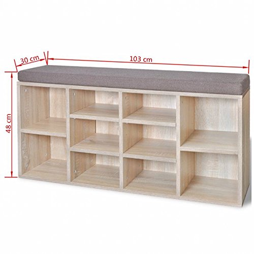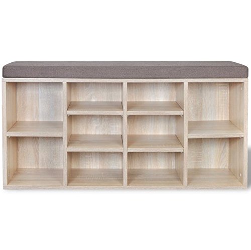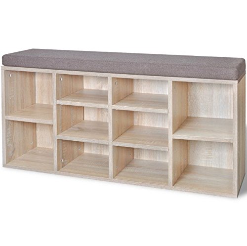 -. Brand : SKB Family -. Color : Oak (frame) and brown (seat) -. EAN : 0820443718931 -. Feature : This shoe storage bench, with a simple but stylish design, will make a great addition to your decor. / The bench provides ample space for storing up to 10 pairs of shoes. / The top is upholstered in thickly foam-padded fabric, so you can sit comfortably while taking your shoes off or putting them on. / Made of high-quality materials, the shoe storage bench is very sturdy and durable. / Delivery also includes assembly accessories. Assembly is very easy. -. Label : SKB Family -. Manufacturer : SKB Family -. Model : SKB-0-718931 -. MPN : SKB-0-718931 -. PartNumber : SKB-0-718931 -. ProductGroup : Lawn & Patio -. ProductTypeName : OUTDOOR_LIVING -. Publisher : SKB Family -. Studio : SKB Family -. Title : SKB family Shoe Storage Bench 10 Compartments Oak Color Home Entryway Hallway Upholstered Seat Furniture -. UPC : 820443718931