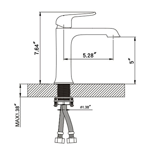-. Feature : Overall Height: 7.64 inch, Spout Height:5 inch, Spout Reach:5.28 inch. / Reliable & Durable: Solid brass base construction & Ceramic disc valves exceed industry longevity standards, ensuring durable performance for life, (tested w/ 500,000 cycles). / Tough Surface Protection: PVD coating finish provides a very tough surface protection, making the faucet very resistant to corrosion, tarnish and even scratching. / Easy Installation: Hot and cold flexible hoses included. All hardware needed for mounting is included with faucet. 3/8" female compression thread.Easy-clean rubber nozzles prevent hard water build-up. / Certification &Warranty:This item is certified by cUPC Certificate, NSF-61 Certificate, NSF372 Certificate. You're protected by a 100% money back guarantee and a free no hassle lifetime replacement warranty!