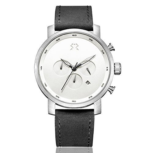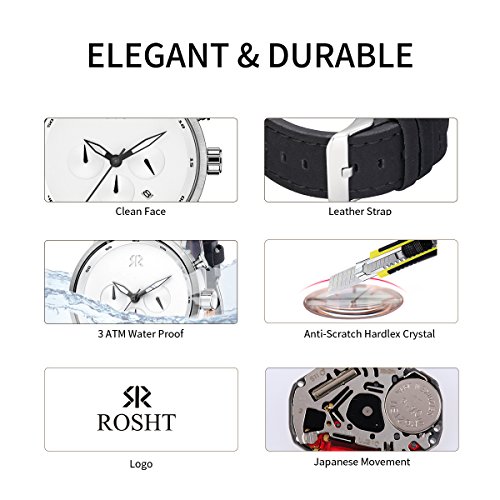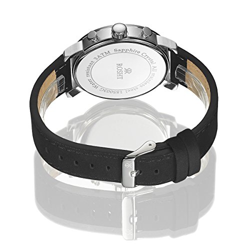 ROSHT맨즈 크로노그래프 손목시계 블랙 레더 밴드,블루핸드,흰 다이얼G185003WT