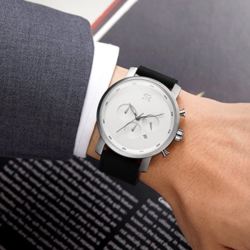 원본상품명: ROSHTメンズクロノグラフ腕時計ブラックレザ?バンド、ブル?ハンド、白いダイヤルG185003WT