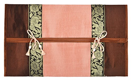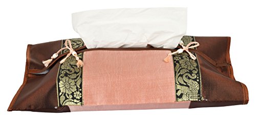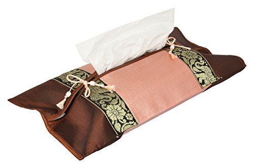 Sharada International Silk Tissue Box Cover (37 Cm X 22 Cm X 0.2 Cm, Brown & Pink)