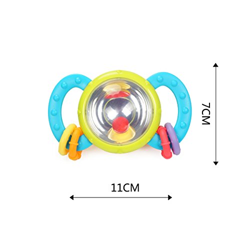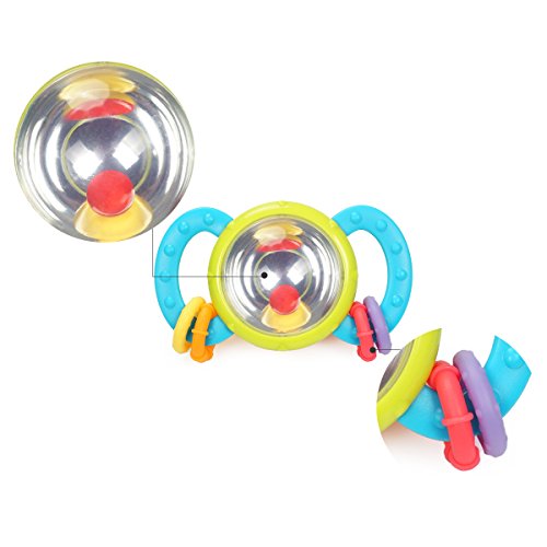 Colorful baby rattle with easy-grasp handle for your little baby, 2-colored ball in the middle reflects changing pictures when shaking, which stimulates your baby's vision development.