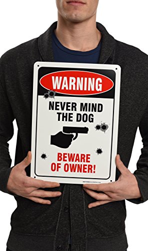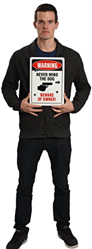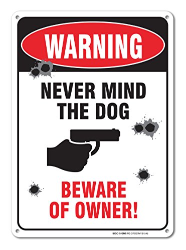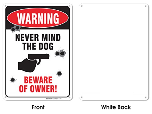 Warning - Never Mind the Dog - Beware of Owner Sign, Aluminum, 10"x 14"