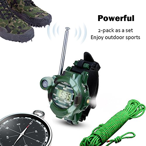 The walkie-talkie designed of magnifying glass, mirror, compass, flashlight and luminous, for the cultivation of kids' curiosity has a great effect Main Features: 2-way radio basics - Walkie talkie watch style, with 150m strong and clear signal range