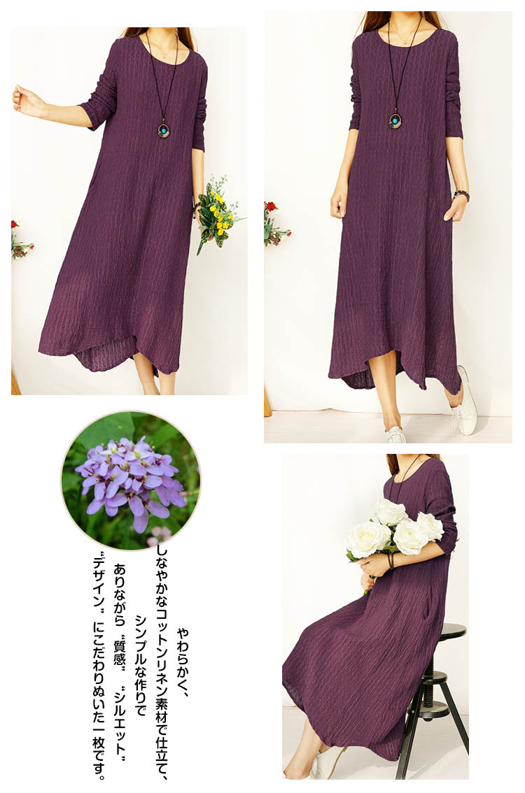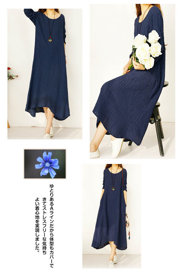 | 『さらっと着て、きちんと見える』コットンリネン素材のロングワンピースやわらかく、しなやかなコットンリネン素材で仕立て、シンプルな作りでありながら“質感”“シルエット”“デザイン”にこだわりぬいた一枚です。Aラインのシルエットはたっぷり布を使って緩やかになびく感じがとっても素敵で大人の女性のシルエットを表現し、女性らしさを感じさせてくれます。ゆとりあるAラインだから体型もカバーできてストレスフリーな気持ちよい着心地を実現しました。楽ちん過ぎて 毎日手にとってしまうほどのお気に入りの一枚になるはず! | |