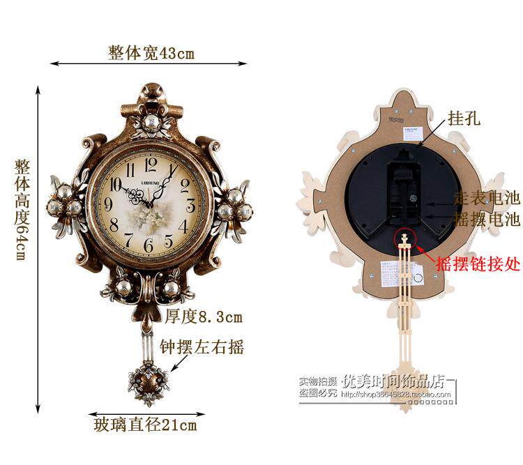 【说明】使用2节5号碳性电池,请勿使用南孚,金霸王以及碱性电池或充电电池,因为此类电池电流量比较大,影响机芯使用寿命,有时甚至影响走时准确性,挂钟尽量使用碳性电池。