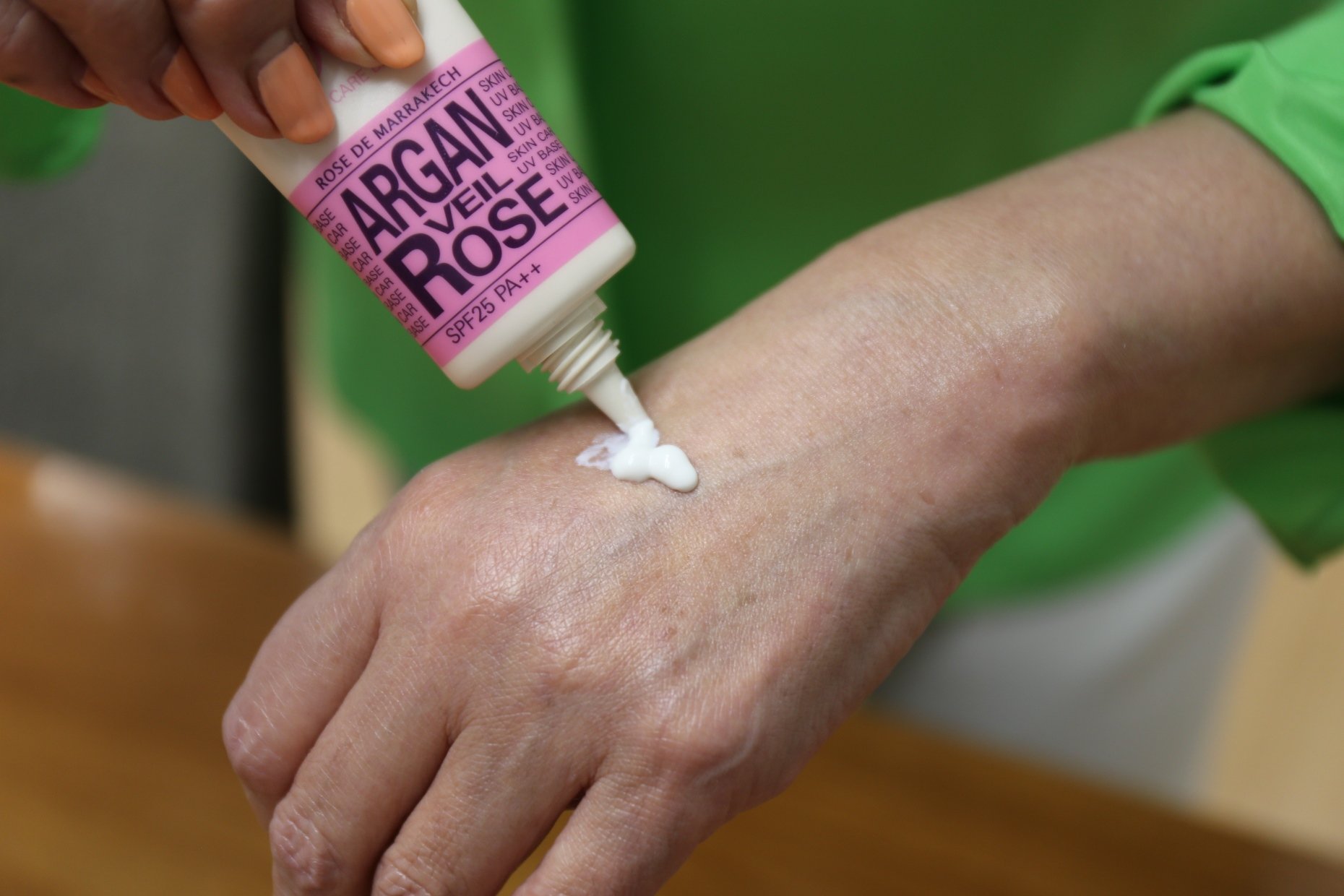 Because it contains ingredients derived from four moist plants, including Argan Oil, it keeps moist skin while being a sunscreen.