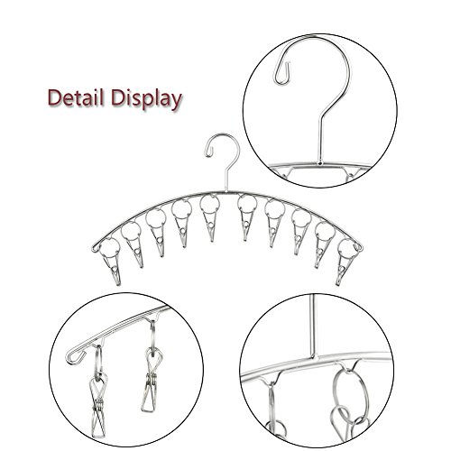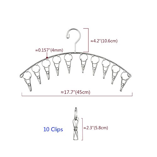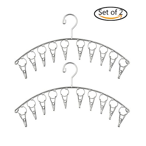 Set of 2,Stainless Steel Clothes Hangers Laundry Drying Rack with 10 Clips Arc 4 mm Diameter For Drying Socks,Towel,Scarf,Bras,Briefs,Pants,Gloves,Hat,Diapers,Baby Clothes,Upgrade from 8 to 10 Clips