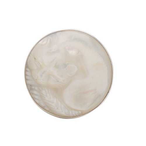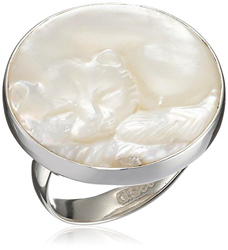 Sterling Silver Carved Mother-of-Pearl Sleeping Cat Ring, Size 7