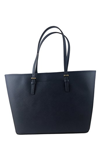-. Title : Leather Jet Set Large Carryall Travel Tote Navy