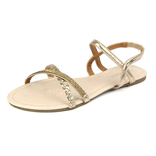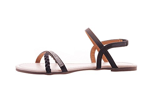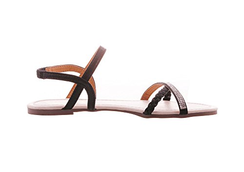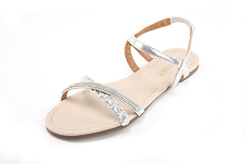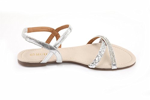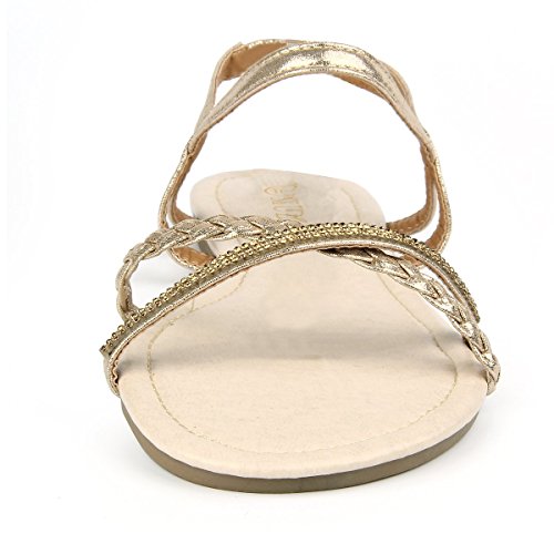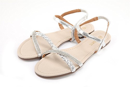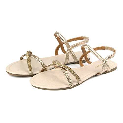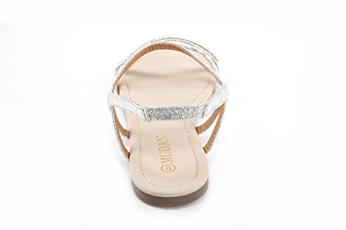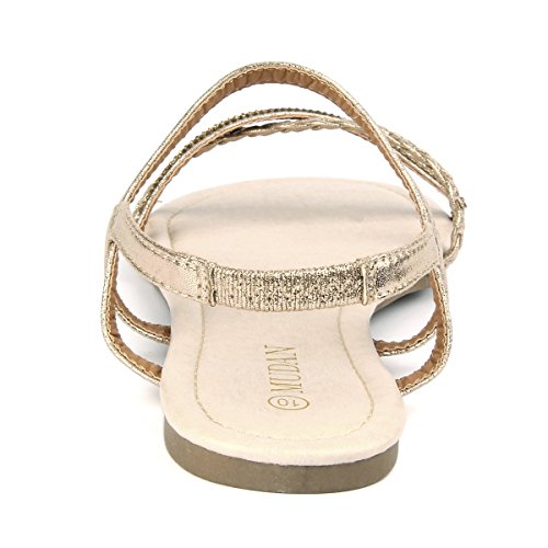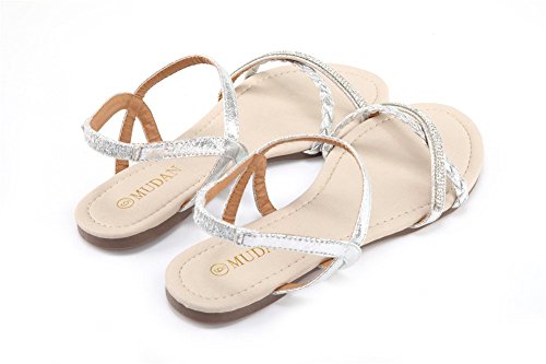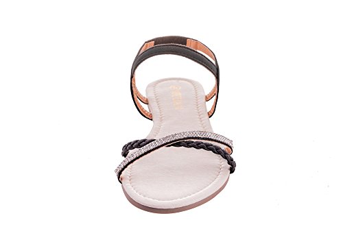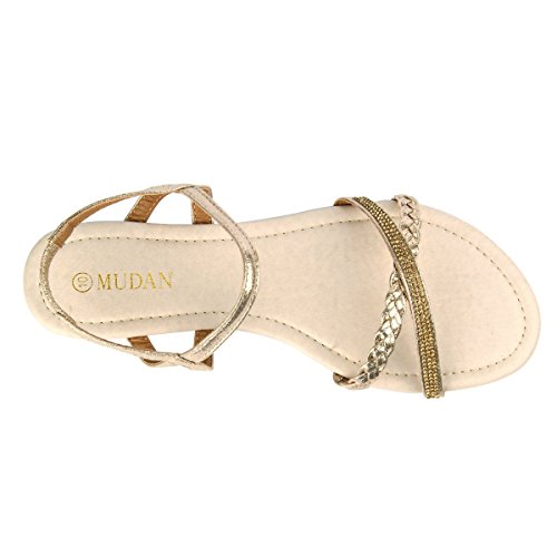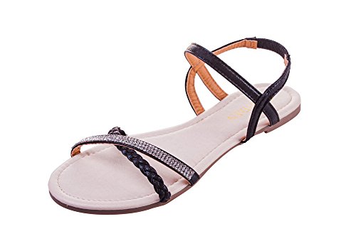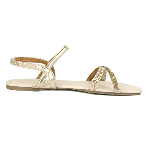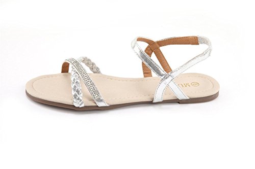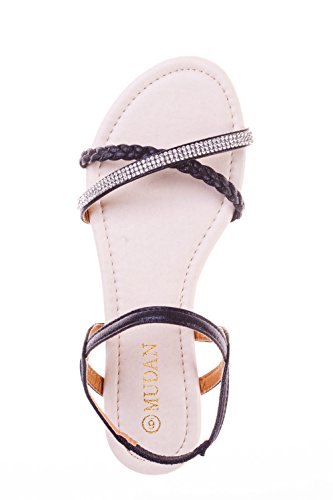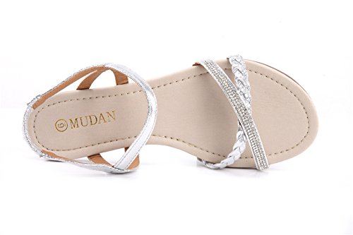 Mu Dan Womens Shoe Flat Braided Rhinestone Comfortable Slingback Sandal