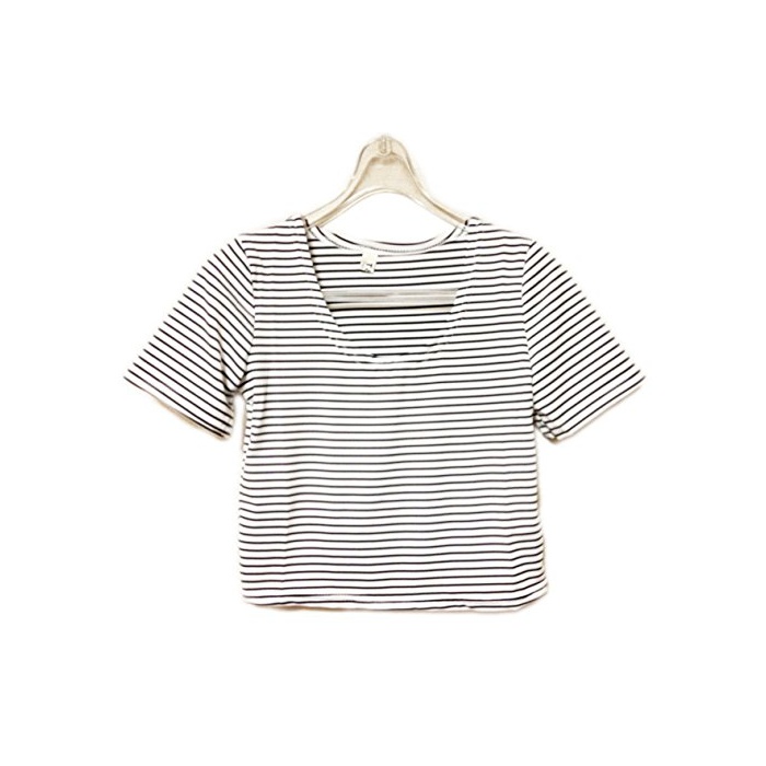 스트레치 소재에 여름에는 대활약하는 쇼트장T셔츠입니다.댄스나 스포츠 웨어로서,또한 껴입은 옷도 멋쟁이♪