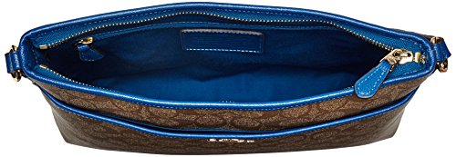 -. Feature : Leather / Zip-top closure, fabric lining / Adjustable strap for shoulder or crossbody wear 10 1/4" (L) x 5 3/4" (H)