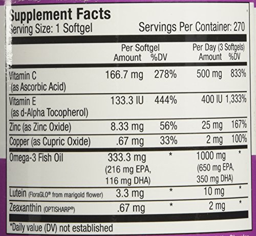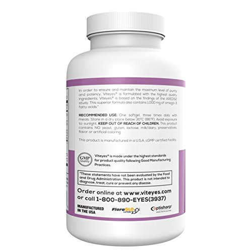 Viteyes AREDS 2 Plus Omega-3 is based on the findings of the AREDS 2 study, plus 1,000 mg of omega-3. Completed in 2013, AREDS 2 was a 5-year follow-up study by the National Eye Institute (NEI) of the original AREDS study. AREDS 2 resulted in the NEI's recommendation to revise the original AREDS formula to help further slow the progression of AMD.* Viteyes AREDS 2 Plus Omega-3 contains Vitamin C 500 mg, Vitamin E 400 IU, Zinc 25 mg, Copper 1.2 mg, Lutein 10 mg, Zeaxanthin 2 mg, & Omega-3 1,000 mg. AREDS 2 analyzed the AREDS formula with and without beta-carotene, due to the risk of lung cancer for smokers/former smokers. The AREDS 2 study also researched adding lutein & zeaxanthin. AREDS 2 participants who took lutein and zeaxanthin and no beta-carotene reduced their risk of developing advanced stages of AMD by 18% compared to those in AREDS 2 who took the original AREDS with beta-carotene. As a result, NEI's AREDS 2 suggests modifying the AREDS formula by omitting beta-carotene & adding lutein & zeaxanthin. Zinc Levels: In the original AREDS study, the dose for zinc was high (80 mg) because a previous small trial had found that high-dose zinc was beneficial for AMD. However, some nutritionists were concerned the dose was too high.* The AREDS 2 study tested zinc at 80 mg & 25 mg. The results showed that when lowering zinc there was “no statistically significant effect on progression to advanced AMD.”** (*NEI website 2013. AREDS 2 Media Q&A www.nei.nih.gov/areds2/MediaQandA.asp. **AREDS2 Research Group. "Lutein/Zeaxanthin and Omega-3 Fatty Acids for Age-Related Macular Degeneration. The Age-Related Eye Disease Study 2 (AREDS2) Controlled Randomized Clinical Trial." JAMA, published online May 5, 2013). These statements have not been evaluated by the Food & Drug Administration. This product is not intended to diagnose, treat, cure or prevent any disease.Feature