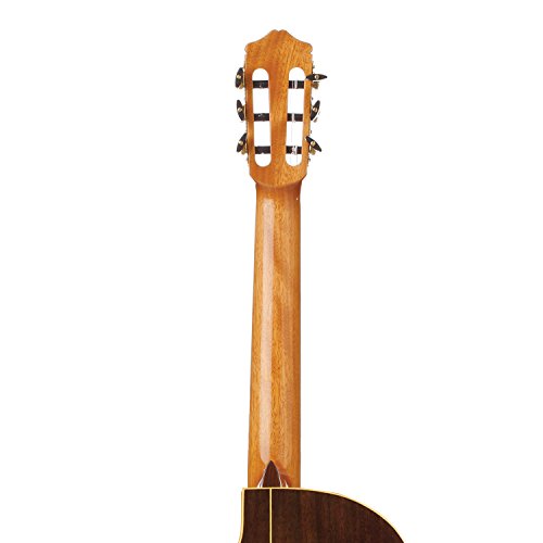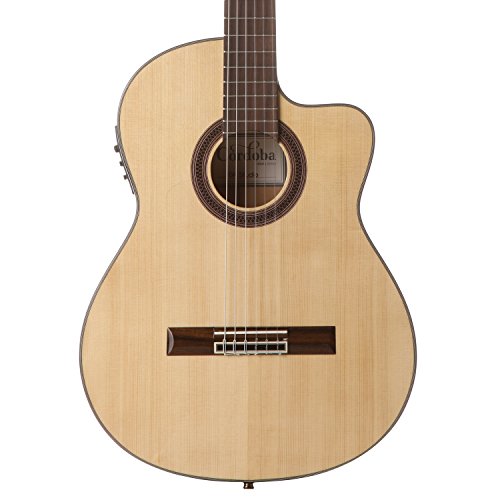 - Feature : Solid European Spruce, Indian Rosewood Back & Sides, Mahogany Neck / Maple binding/Indian rosewood bridge / Rosewood Fingerboard, Cutaway-Electric Style Neck, 19 Frets, 25.6" Scale Length / All Natural Inlaid Wood Mosaic Rosette, Spanish Fan Bracing, Flamenco Style Build, High Gloss Finish / Includes: Cordoba Gig Bag, Wood Foot Stool, ChromaCast Stand, String Winder, 12 Pick Sampler and Polishing Cloth
