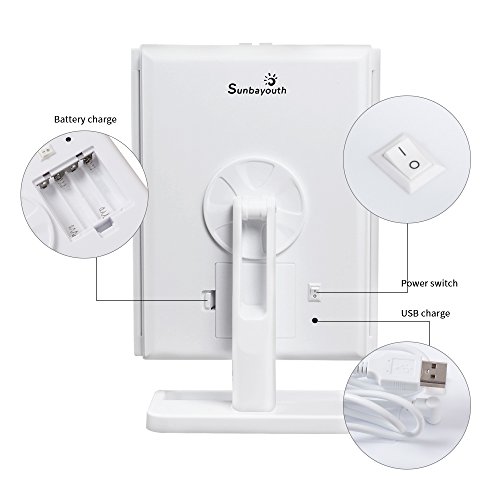 - ❤Two Options of Power Supply: The vanity mirror powered by 4 AAA batteries and USB charging.(battery not included, usb cord included). You can charge it through usb cord when you are at home, and choose battery is more convenience if you are going out or just want to move round.