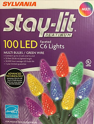 Sylvania 100 Ct Led Stay Lit C6 Lights Multi Color