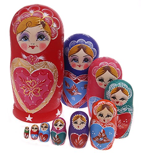 -. Title : Moonmo 10pcs Beautiful Handmade Wooden Russia Nesting Dolls Gift Russian Nesting Wishing Dolls Heart Matryoshka Traditional.