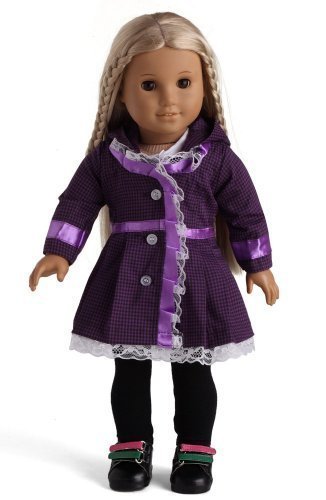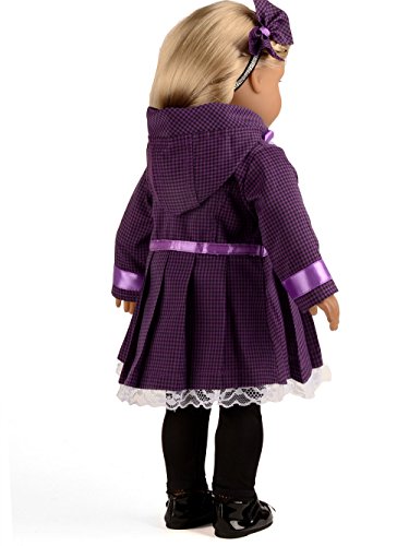3pc outfits fits 18" American Girl Dolls. Item include: Purple Plaid Jacket & White Shirt & Black Leggings. the jacket closes at the front with the real buttons and the white closes at back with velcro, shoes not included.Feature