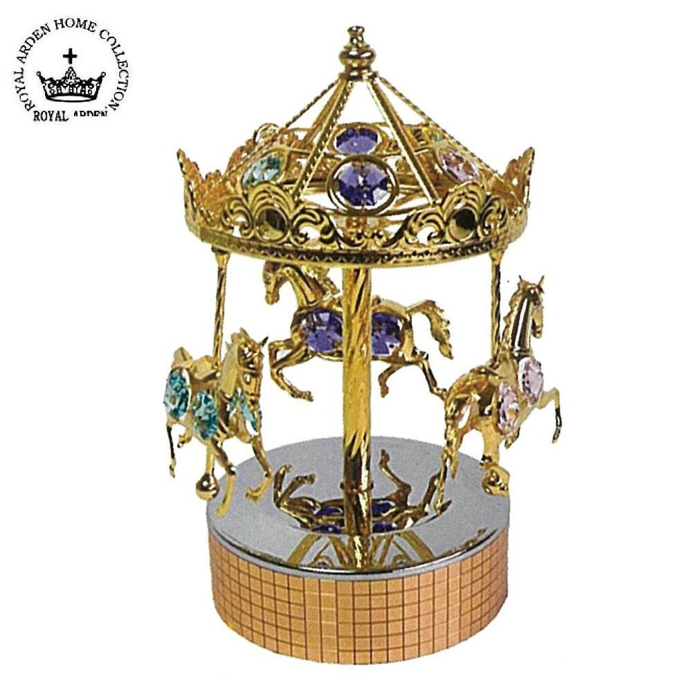 スワロフスキークリスタルが美しく輝く上品なデザインです。 製造国:中国 素材・材質:スワロフスキークリスタル、合金、金メッキ 商品サイズ:Φ11.5×H19cm 仕様:曲名:イッツアスモールワールド ※サプライヤー直送品 ※2019年4月下旬入荷分予約受付中【商品名】ロイヤルアーデン SWAROVSKI オルゴール メリーゴーランド 01324