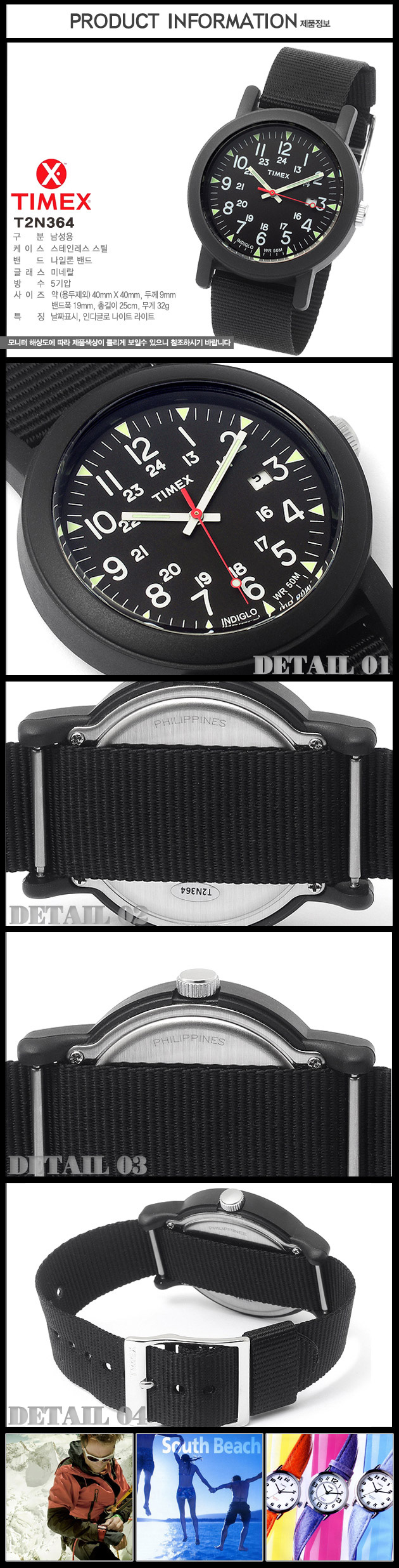 ステインレススチルケース、ナイロンバンド、ミネラルグラス、5気圧防水