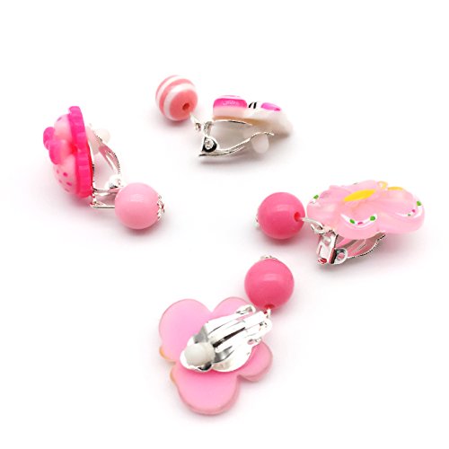 Elesa Miracle 7pc Kids Little Girl Clip-on Earrings Value Set Party Favor Birthday Gift Pretend Play Princess Jewelry Set in Box
