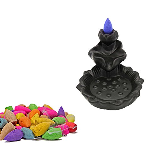 MIUSIE Ceramic Smoke Backflow Incense Burner Pocerlain Decorated Charcoal Censer Holder Home Decor Gift with 40 Cones,S11
