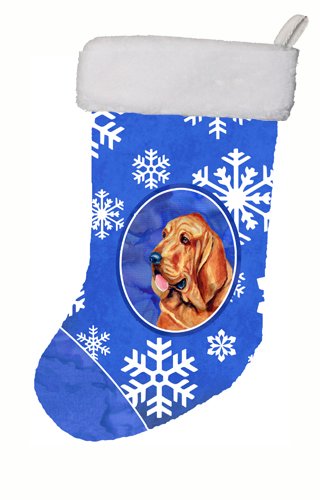 Caroline's Treasures Bloodhound Winter Snowflakes Holiday Christmas Stocking, 11 x 18", Multicolor