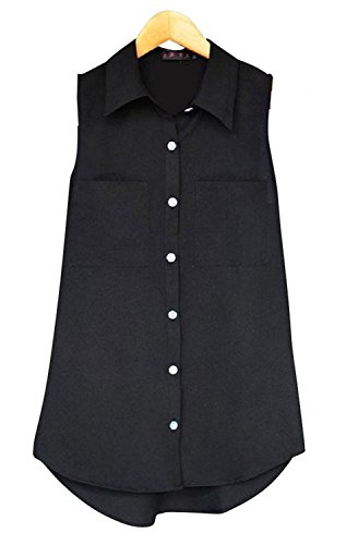 -. Title : formanism ノースリーブ シフォン カラー スリム レディース シャツ (ブラック M)